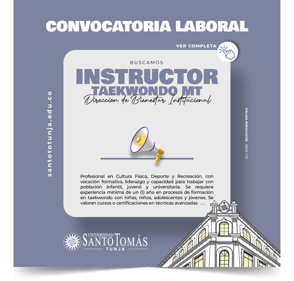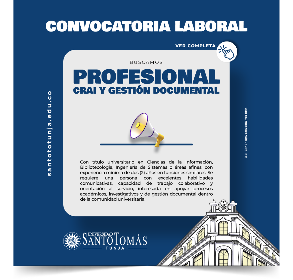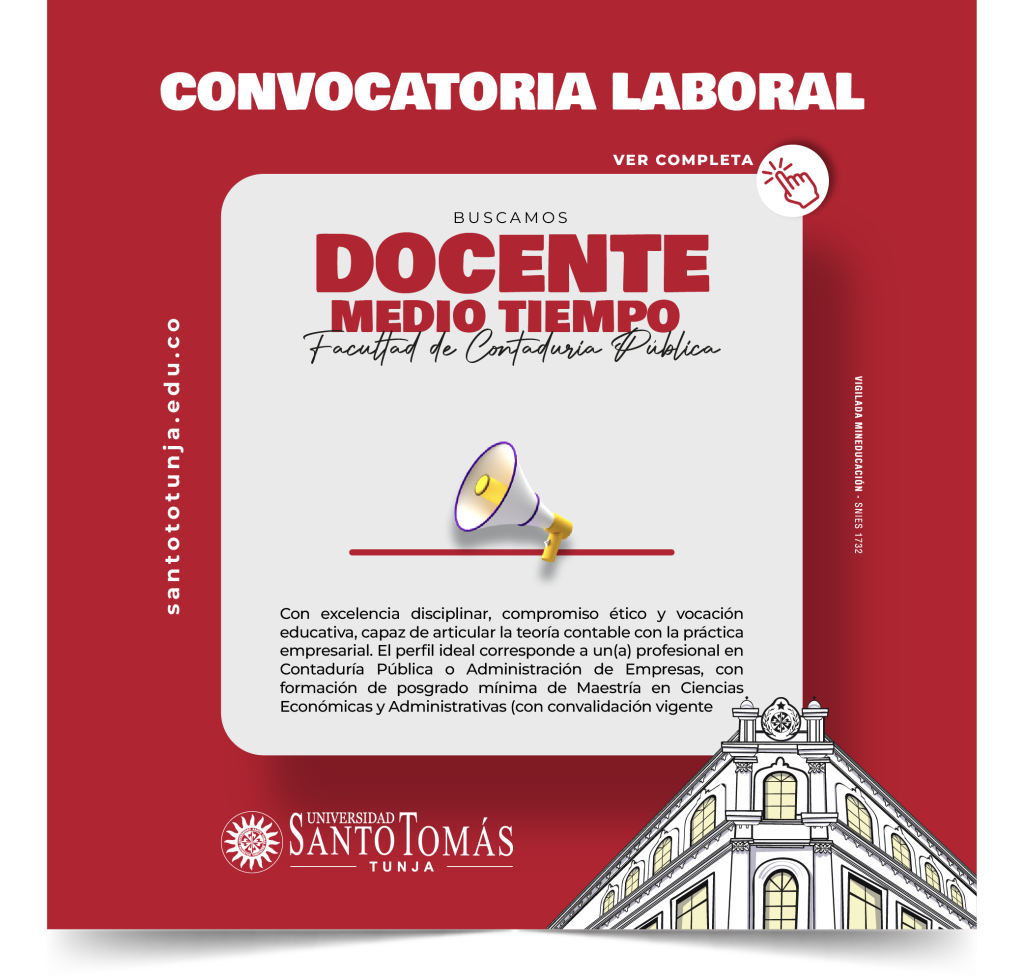 Aplicar a una convocatoria laboral, no constituye en ningún caso compromiso por parte de la Universidad Santo Tomás, para realizar una eventual vinculación laboral con los postulantes.